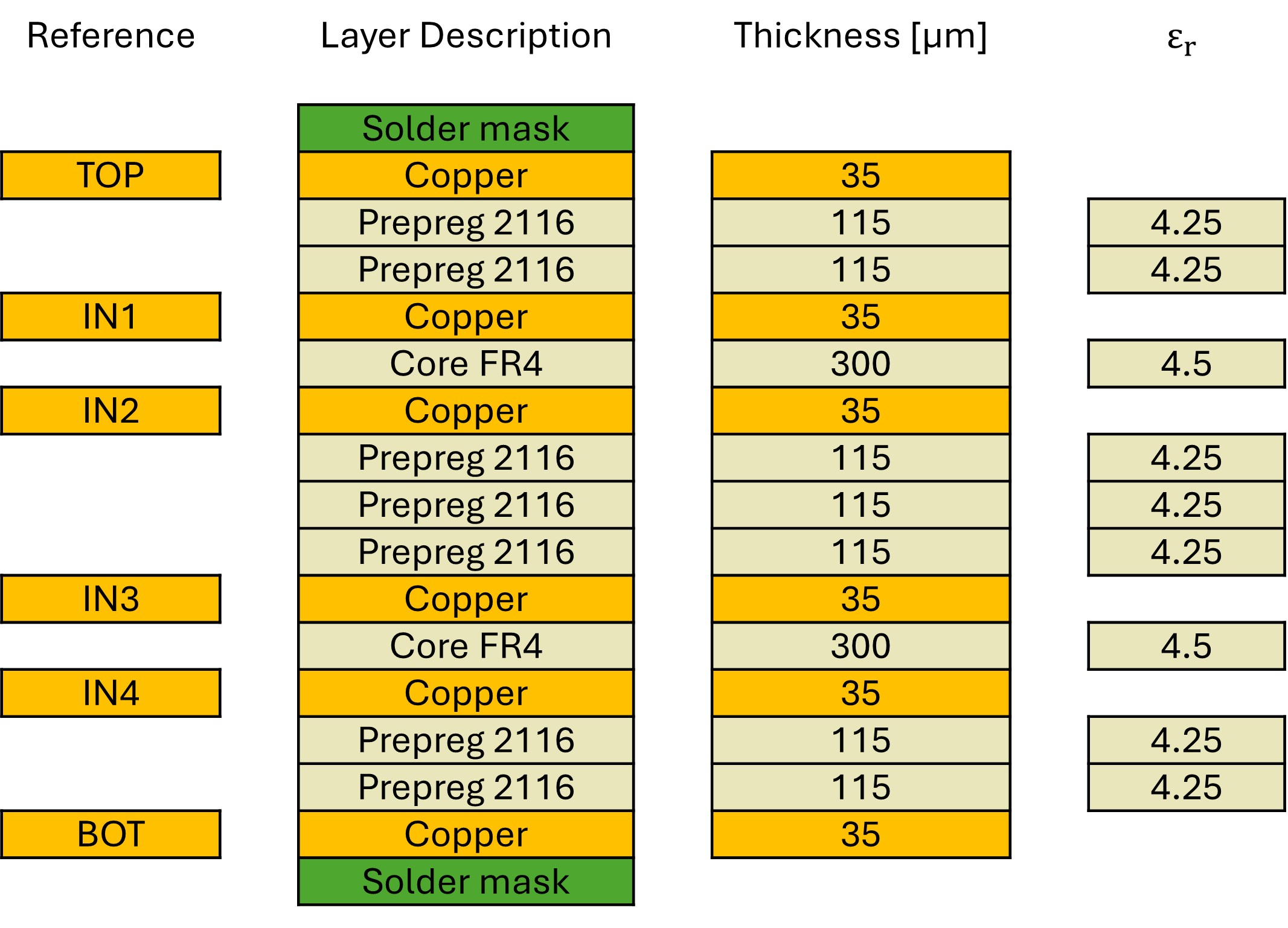 | Type | Resistance [Ω] | Signal | Reference | Width [µm] | Space [µm] | Width [µm] |