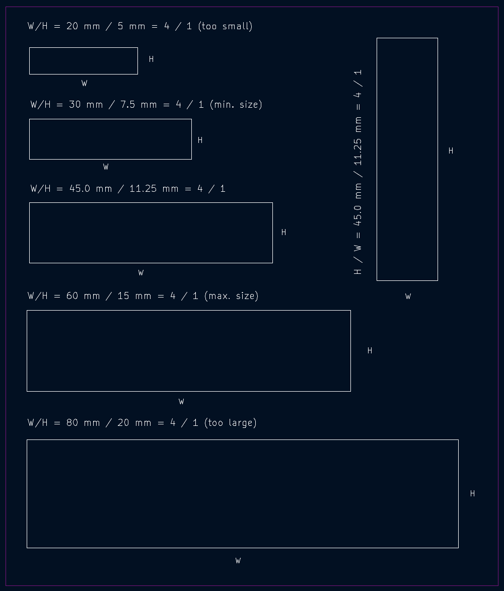 - Aspect ratio: 4:1 (long side / short side).