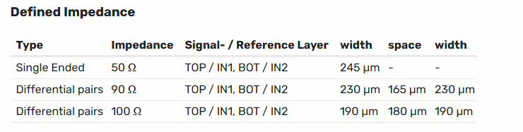 Can you share recommanded Width and Space for single-ended 50 Ohm Co-planer Trace requirment to meet 50 ohm +/-10 % Impedance on standard 4-layer Aisler PCB.