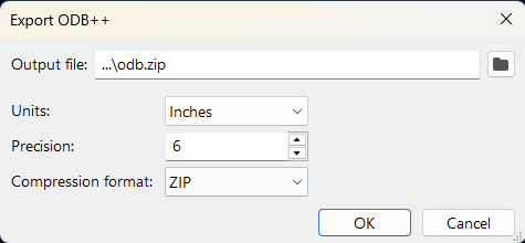 - Export the ODB++ as zip (File → Fabrication Outputs → ODB++ Output File…)