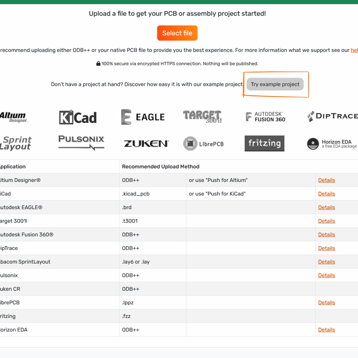 To change that, we have introduced an interactive test project right on our “Get Started” page. With a single click, you can now load a complete project environment – absolutely no need to upload your own design files or worry about protecting your intellectual property.