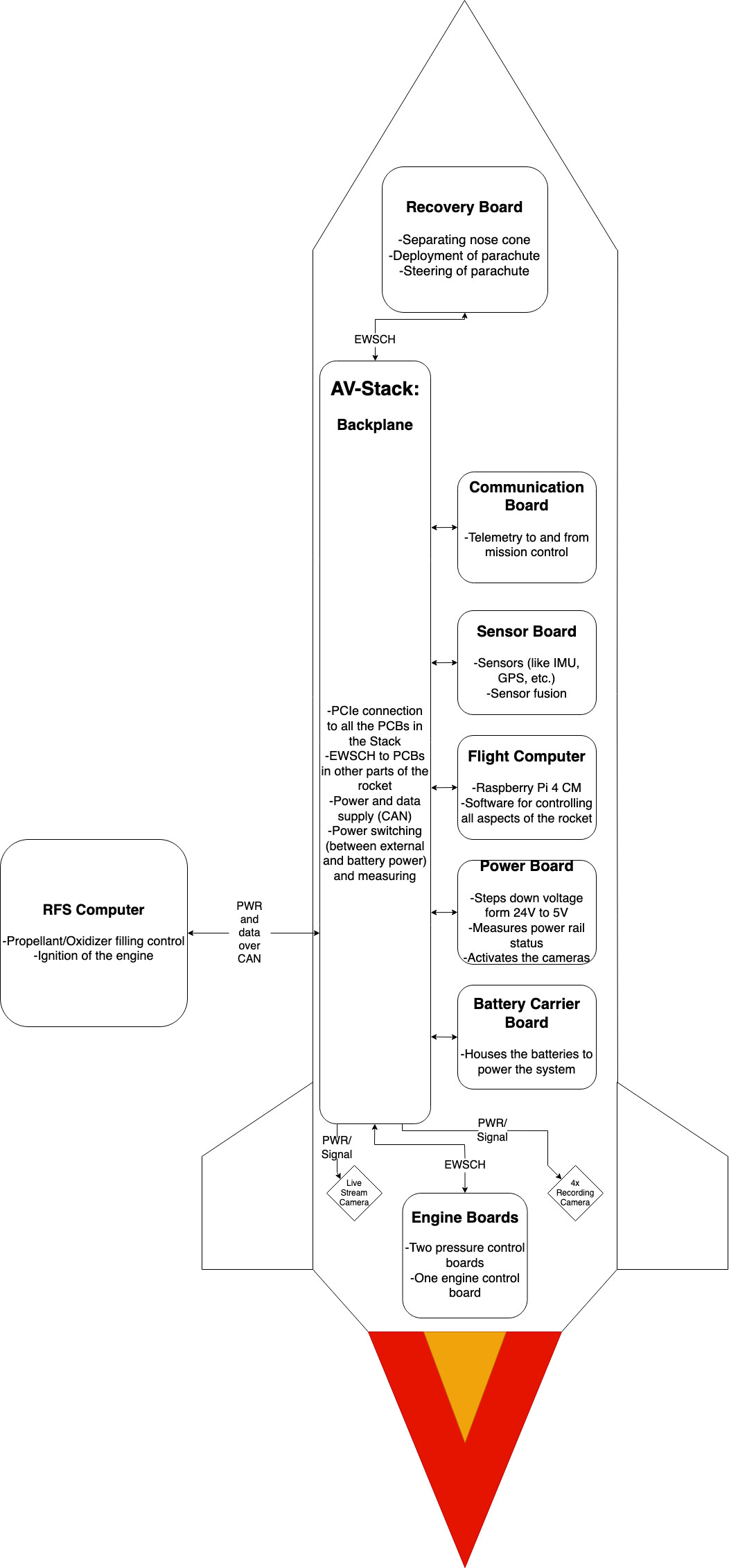Additionally, to the electronics inside the rocket there are also critical systems outside the rocket, like our remote filling station (RFS) and mission control. The remote filling station handles filling the rocket with the nitrogen needed for pressurization and liquid oxygen, which we use as oxidizer, for the engine, without human intervention. This is necessary as, in the filling process and afterwards, no one can access the rocket anymore for safety reasons.