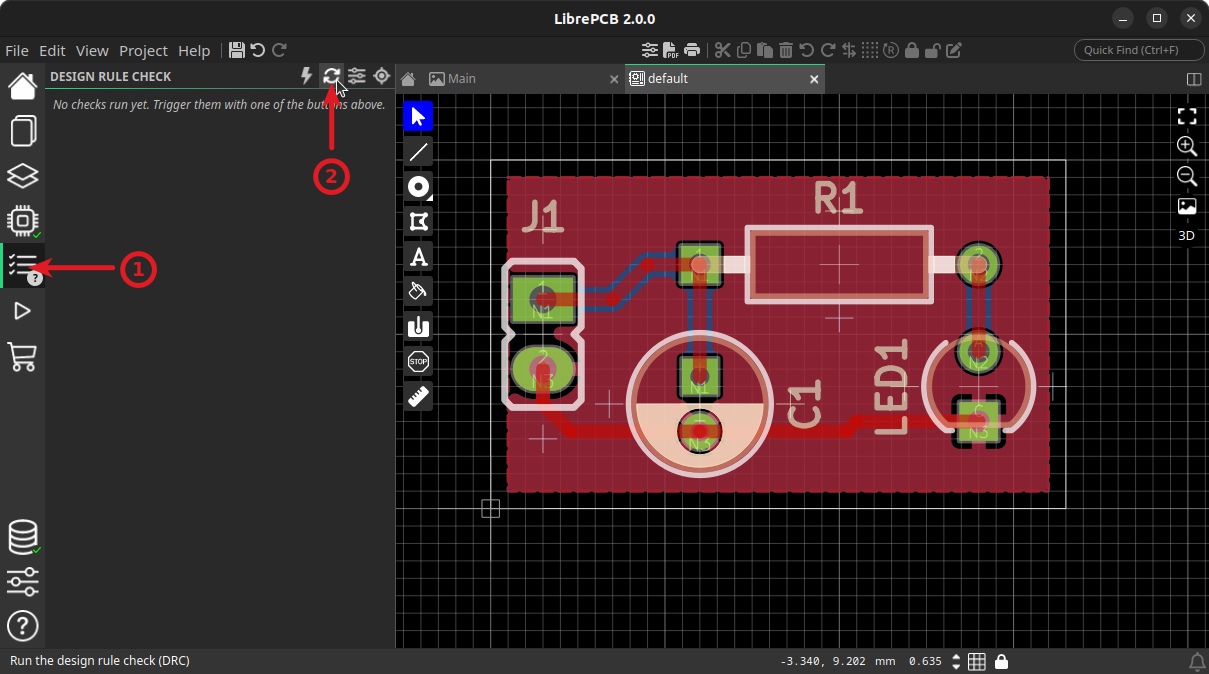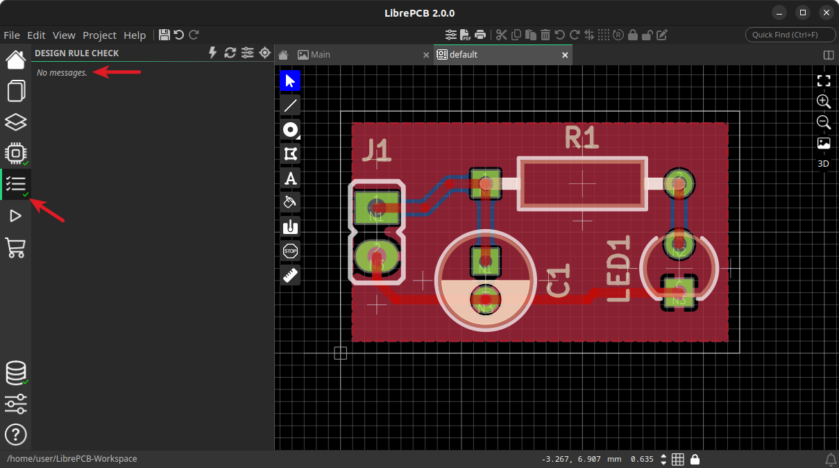 New in LibrePCB 2.0.0: It is now possible to import predefined design rules . By clicking the import icon, you can, for example, load the “LibrePCB Fab: Standard” rules, which are already configured for simple PCBs.