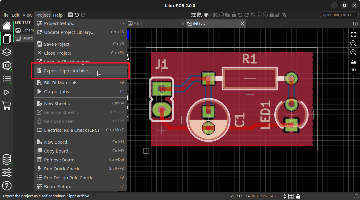 If you dont want to use LibrePCB Fab you can manually export a .lppz archive file and upload it to our site.