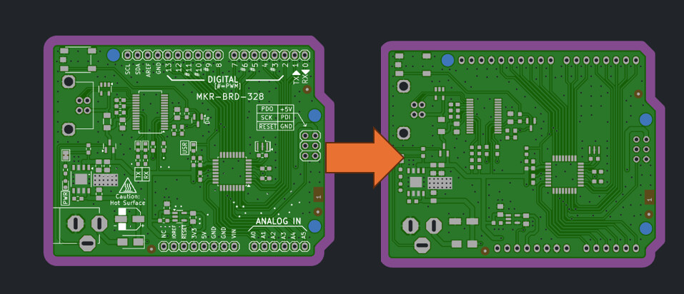 One might want to order PCBs without silkscreen for aesthetic reasons or lower cost by reducing steps during manufacturing. As we do not provide an option to deselect layers in the order process, it is required to send us the manufacturing data without the silkscreen layers.